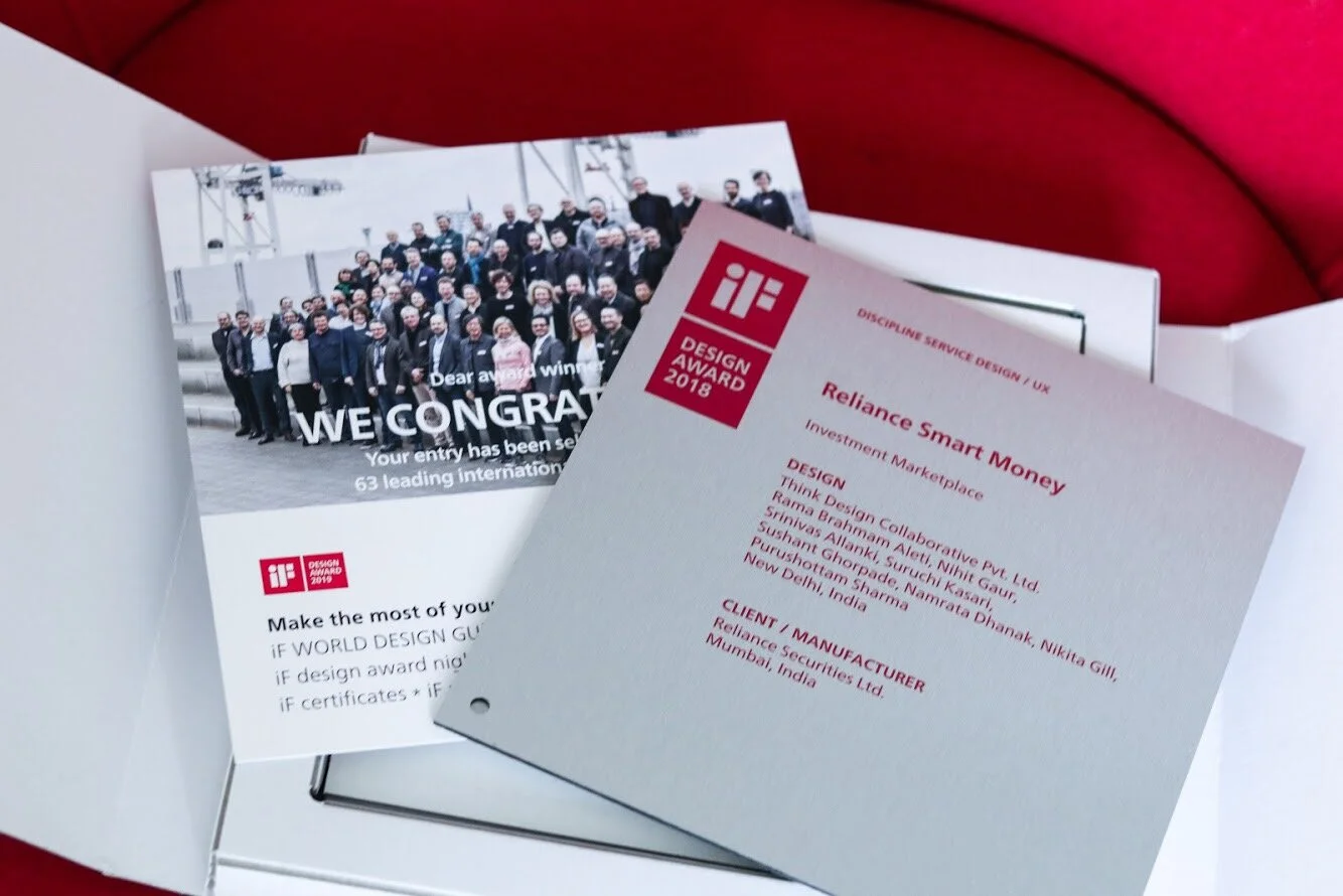 AWARD: And then the prestigious iF Design award. Won this for innovative work in Fintech domain